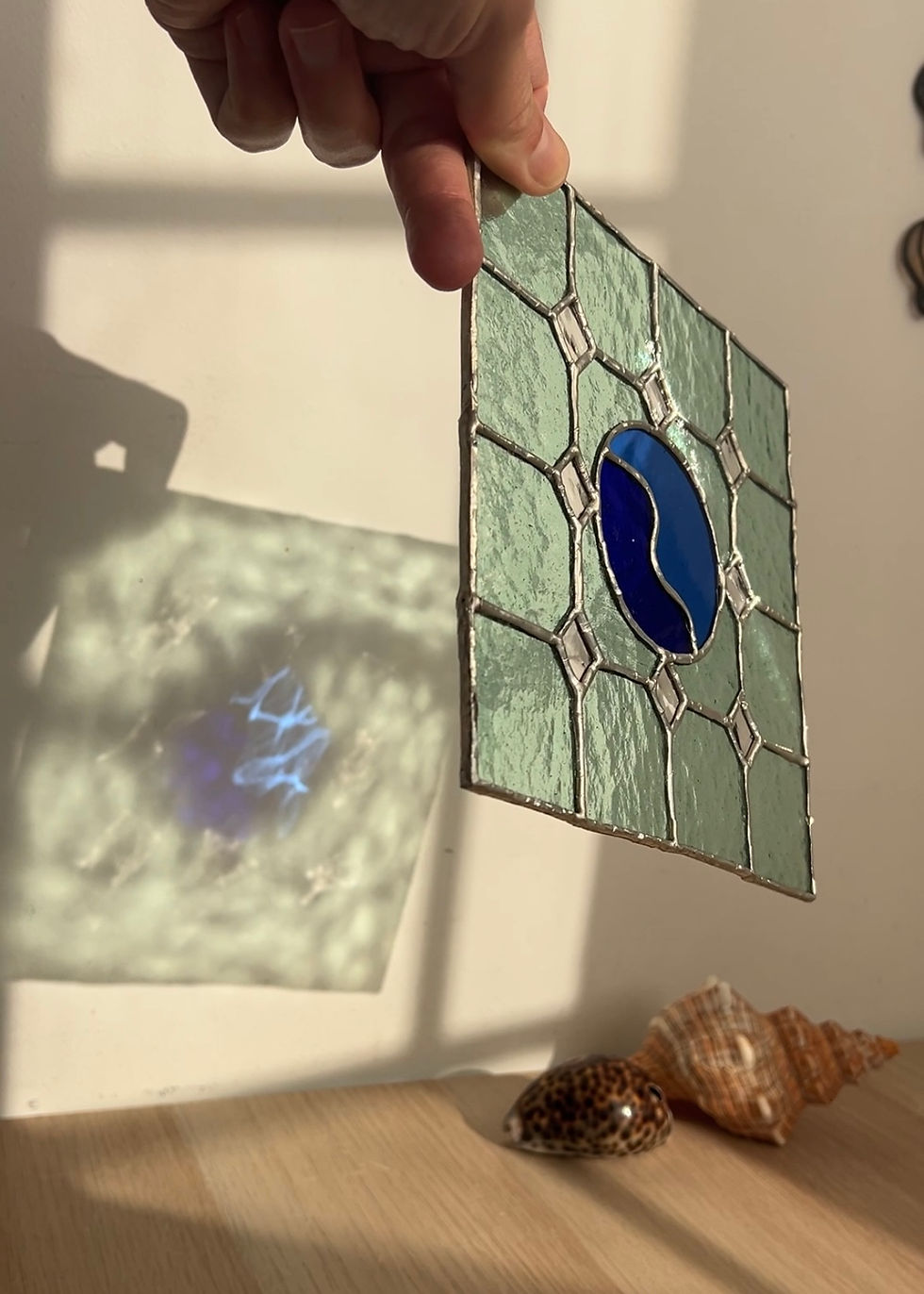 Chaque vitrail que vous commandez est une pièce unique, façonnée à la main avec soin dans le sud de la France. Les petites variations et imperfections naturelles en font tout le charme et la singularité, rendant chaque création véritablement unique.